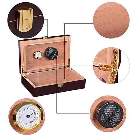 Thông tin sản phẩm Volenx Desktop Cigar Humidor for 15-20 Cigars, Super Sealing Humidor Cigar Box Travel, Handcraft Spanish Cedar Wood Cigar Case Cigar Accessories Gift Cigar Box with Hygrometer and Humidifier