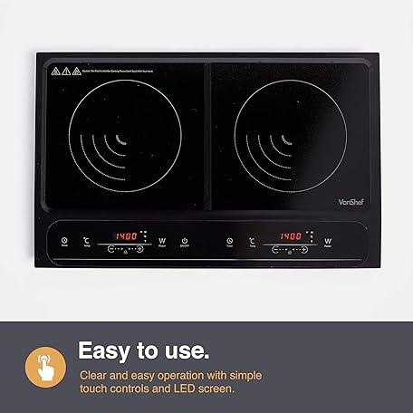 Thương hiệu VonShef là cái tên nổi tiếng được rất nhiều khách hàng trên thế giới chọn lựa. Với kiểu dáng đẹp mắt, sang trọng, sản phẩm VonShef Double Induction Hob - 2800W Portable Dual, Twin Plate Electric Table Top with LED Display, Built-In Timer, 10 Heat Settings 60-240°C - Black là sự lựa chọn hoàn hảo nếu bạn đang tìm mua một món cho riêng mình.