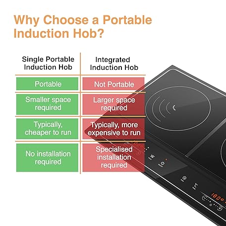 Thông tin sản phẩm VonShef Double Induction Hob - 2800W Portable Dual, Twin Plate Electric Table Top with LED Display, Built-In Timer, 10 Heat Settings 60-240°C - Black