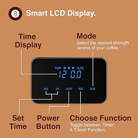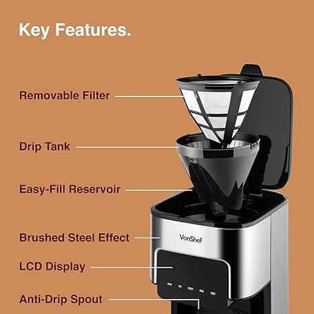 Thông tin sản phẩm VonShef Filter Coffee Machine - 1.5L Drip Coffee Maker with Hot Plate & Programmable 24 Hour Timer, 900W, Digital Display, Keep Warm Function, Reusable Filter, 12 Cup Capacity - Silver.