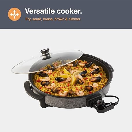 Thông tin sản phẩm VonShef Large Multi Cooker 6L – 42cm Electric Frying Pan with Lid & Adjustable Temperature Control, Easy Clean, Non Stick Aluminium with Cool Touch Handles & Detachable Power Cable for Serving – 1500W