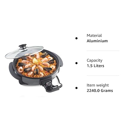 Thông tin sản phẩm VonShef Multi Cooker 1.5L – 30cm Electric Frying Pan with Lid & Adjustable Temperature Control, Easy Clean, Non Stick Aluminium with Cool Touch Handles & Detachable Power Cable for Serving – 1500W