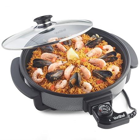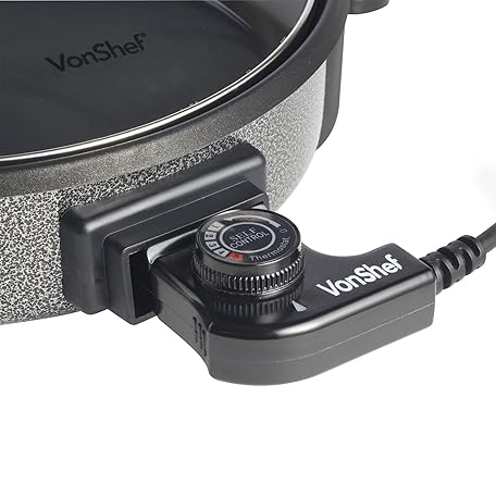 Thương hiệu VonShef là cái tên nổi tiếng được rất nhiều khách hàng trên thế giới chọn lựa. Với kiểu dáng đẹp mắt, sang trọng, sản phẩm VonShef Multi Cooker 1.5L – 30cm Electric Frying Pan with Lid & Adjustable Temperature Control, Easy Clean, Non Stick Aluminium with Cool Touch Handles & Detachable Power Cable for Serving – 1500W là sự lựa chọn hoàn hảo nếu bạn đang tìm mua một món cho riêng mình.
