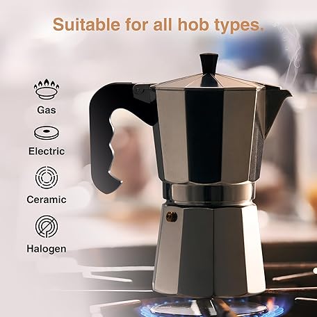 Thông tin sản phẩm VonShef Stovetop Coffee Maker, 6 Cup Aluminium Italian Espresso Maker, 300ml Gas & Electric Stove Top Moka Pot with Replacement Gasket & Filter