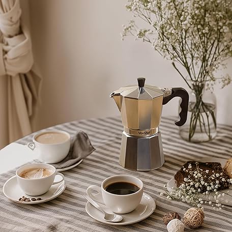 Thương hiệu VonShef là cái tên nổi tiếng được rất nhiều khách hàng trên thế giới chọn lựa. Với kiểu dáng đẹp mắt, sang trọng, sản phẩm VonShef Stovetop Coffee Maker, 6 Cup Aluminium Italian Espresso Maker, 300ml Gas & Electric Stove Top Moka Pot with Replacement Gasket & Filter là sự lựa chọn hoàn hảo nếu bạn đang tìm mua một món cho riêng mình.
