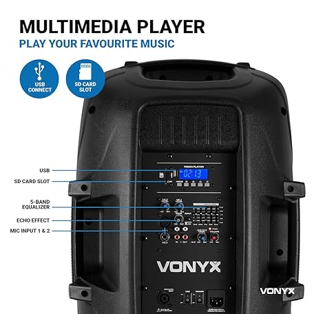 Thương hiệu VONYX là cái tên nổi tiếng được rất nhiều khách hàng trên thế giới chọn lựa. Với kiểu dáng đẹp mắt, sang trọng, sản phẩm Vonyx VPS152A 15-Inch Active Party Speaker System with Bluetooth, Speaker Stands, Wired Microphone & LED Lights – Complete DJ PA System for Karaoke, Events, Parties & Stage Performance là sự lựa chọn hoàn hảo nếu bạn đang tìm mua một món cho riêng mình.