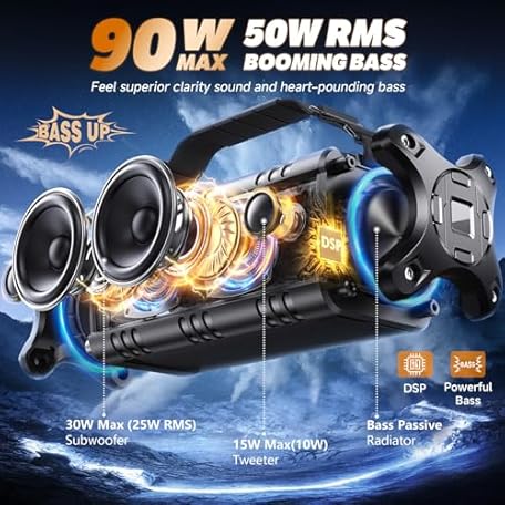 Thông tin sản phẩm W-KING 90W Max Bluetooth Speaker, IPX6 Waterproof Portable Speakers Wireless Bluetooth, 50W Deep Bass Loud Outdoor Speaker with 40H Playtime/Stereo Pairing/TF Card/AUX/NFC for Home Party,Camping,Beach