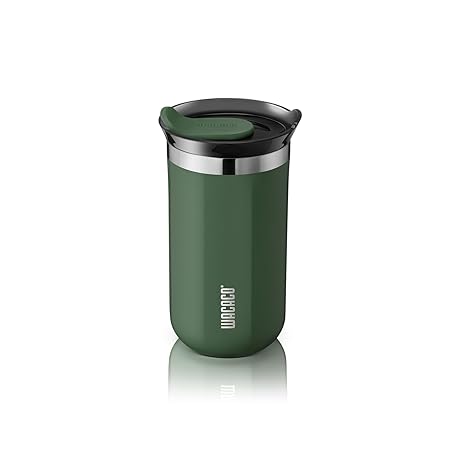 WACACO Octaroma Lungo Vacuum Insulated Coffee Mug, Double-Wall Stainless Steel Travel Tumbler with Drinking Lid, 10 fl oz(300ml), M Size, Green