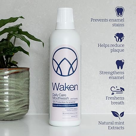 Sản phẩm Waken, Strawberry Fluoride Mouthwash for Bad Breath, Helps Protect Against Cavities and Plaque, Alcohol Free Mouth wash, Strengthens Enamel, Vegan, No Added Colours or Flavors, Award-Winning, 500ml đang được bán với giá ưu đãi là $8.9053 tại nước Anh.