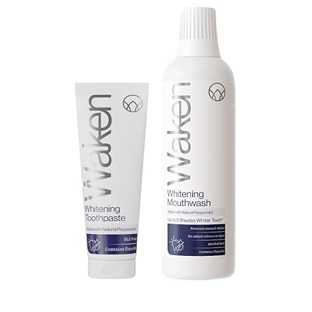 Sản phẩm Waken Whitening Mouthwash & Toothpaste Bundle, whitening Formula,Helps Protect Against Cavities and Reduce Plaque,Vegan, Alcohol & SLS-Free, Natural Peppermint, Recyclable đang được bán với giá ưu đãi là $9.4939 tại nước Anh.