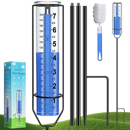 WANTELFOR Rain Gauge,7" Large Plastic Decorative Rain Gauge Outdoor,Accurate Rain Measure Gauge for Yard,Garden,Lawn,Adjustable Hight with Stake and Brush
