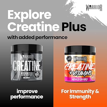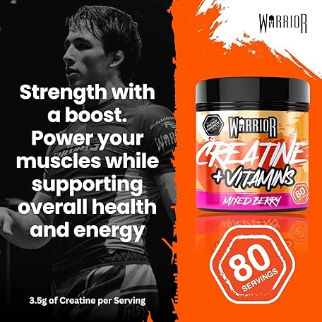 Sản phẩm Warrior Creatine Monohydrate Powder + Vitamins 360g - Performance & Recovery - Pure Micronised Multivitamin Nutrition Blend - Vitamin A, B12, C, D, E, Magnesium, Iron, Zinc - 80 Servings (Mixed Berry) đang được bán với giá ưu đãi là $14.6169 tại nước Anh.