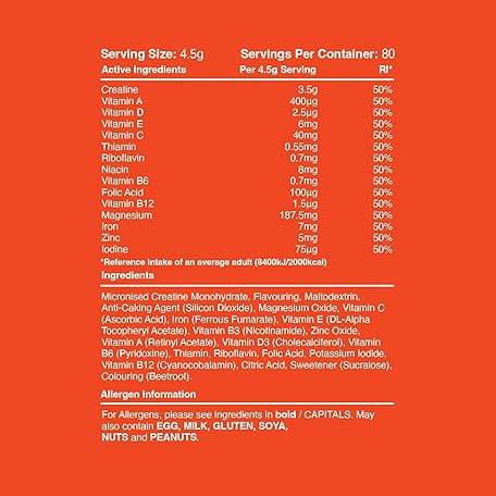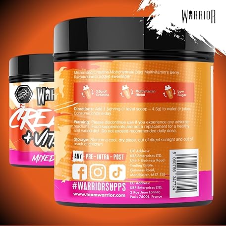 Thông tin sản phẩm Warrior Creatine Monohydrate Powder + Vitamins 360g - Performance & Recovery - Pure Micronised Multivitamin Nutrition Blend - Vitamin A, B12, C, D, E, Magnesium, Iron, Zinc - 80 Servings (Mixed Berry)