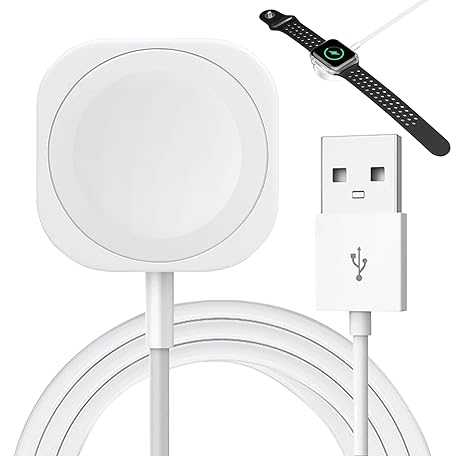 Watch Charger Cable USB for Apple, Wireless iWatch Charger Compatible with Apple Watch Fast Chargers, Portable Fast Charging Magnetic Cable Cord for iWatch 9/8/7/6/5/4/3/2/1/Ultra 2/Ultra/SE, Round
