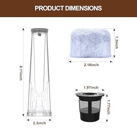 Thông tin sản phẩm Water Filter Holder and 12 Water Filters Replacement for Keurig 2.0 tall handle cartridges Starter Kit, K-Supreme, K-Slim, K-Express, K-Classic, K-Elite, K-Cafe, K-Duo PLUS with 3 Reusable K Cups
