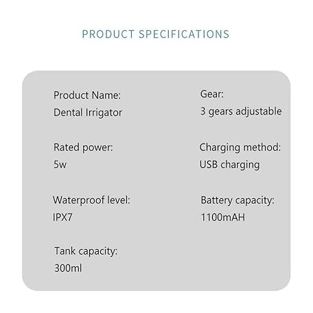 Thông tin sản phẩm Water Flosser, Clean Teeth, Cordless Professional Dental Oral Irrigator - 300ml Water Tank, Rechargeable, Ipx7 Waterproof Stepless Speed for Teeth, Braces, Gum & Bridge Cleaning