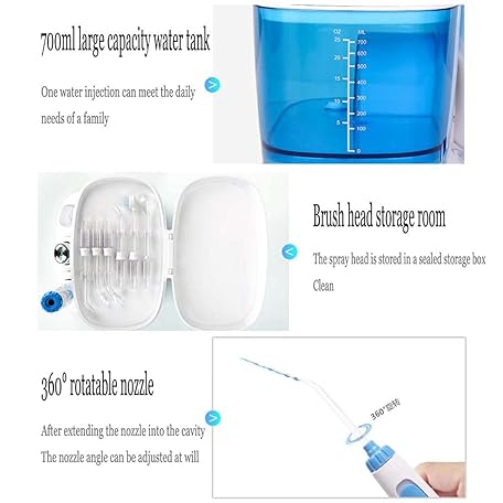 Thông tin sản phẩm Water Flosser, Dental Oral Irrigator for Teeth/Braces, 10 Pressure Levels Water Pick Teeth Cleaner 6 Replaceable Water Jet Tips for Family, 700ML Capacity