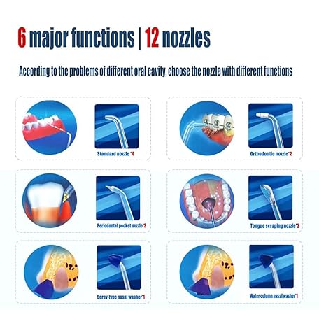 Thông tin sản phẩm Water Flosser, Dental Oral Irrigator, Waterproof Leakproof, 12 Interchangeable Water Jet Tips, 6 Adjustable Water Pressure, 800 ML Capacity, for Travel and Family Use
