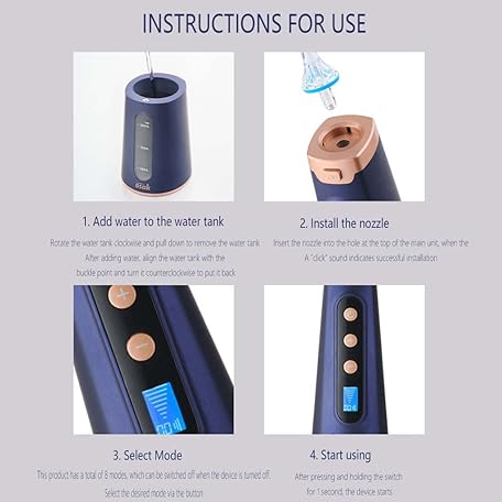 Thông tin sản phẩm Water Flosser for Teeth Cleaning, Cordless Oral Irrigator, IPX7 Waterproof Flosser, Plaque Removal, 8-speed USB Charging 7 Days Home/travel