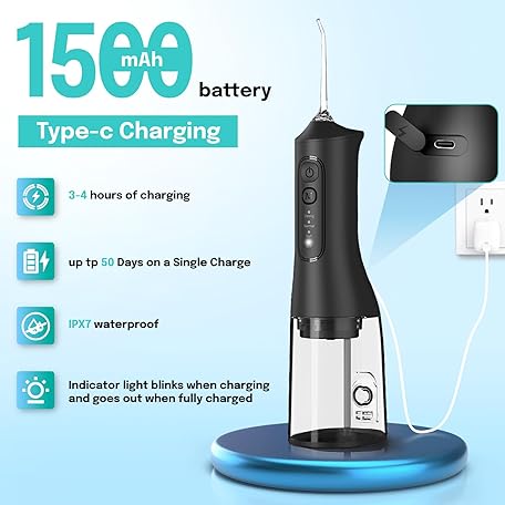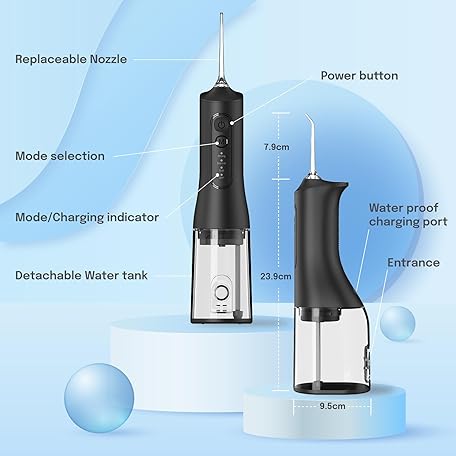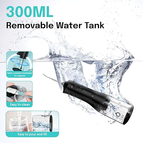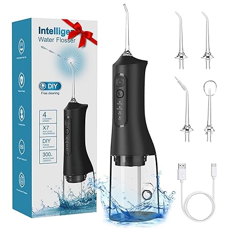 Thông tin sản phẩm Water Flosser, Water Flossers for Teeth Cordless with 4 Modes & 4 Jet Tips, 300ml Electric Flosser for Teeth IPX7 Waterproof & USB Rechargeable, Oral Irrigator Dental Water Jet for Travel & Home Use