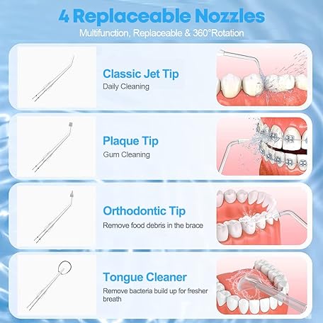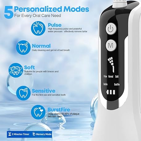 Sản phẩm Water Flossers for Teeth Cordless and Oral Irrigator Dental Flosser with 5 Modes, 360ML Portable Dental Water Flosser with 4 Jet Tips & USB Rechargeable Use for Travel -White đang được bán với giá ưu đãi là $31.3811 tại nước Anh.
