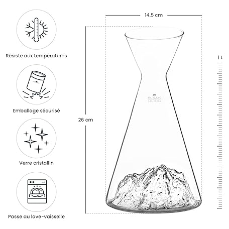 Sản phẩm Water Jug 1 L | Premium Borosilicate Hand-Blown with Embossed Mountains | TOPOGRAPHIC (Mont Blanc) đang được bán với giá ưu đãi là $70.1633 tại nước Anh.