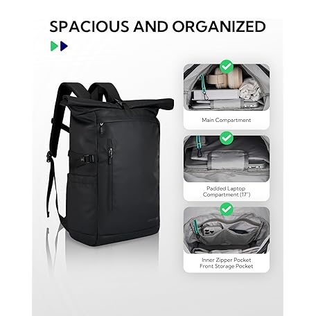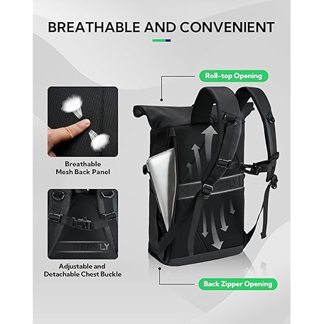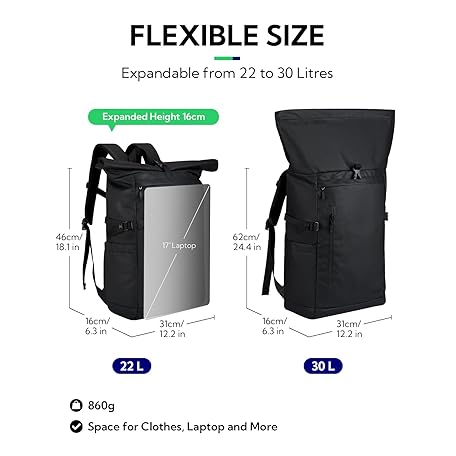 Sản phẩm Waterfly Roll Top Backpack Rucksack: 30L Bagpack Water Resistant Daypack for Men Women Rolltop Laptop Daysack with Multiple Compartments for School Commuting Travel, Black đang được bán với giá ưu đãi là $60.8874 tại nước Anh.