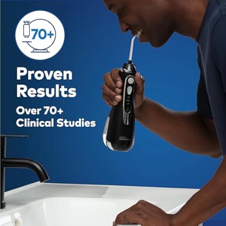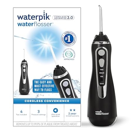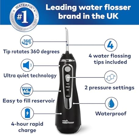 Thông tin sản phẩm Waterpik Cordless Advanced Water Flosser, 3 Pressure Settings, Dental Plaque Removal Tool, Ideal for Travel or Small Bathrooms, USB Charger, Black, WP-582UK