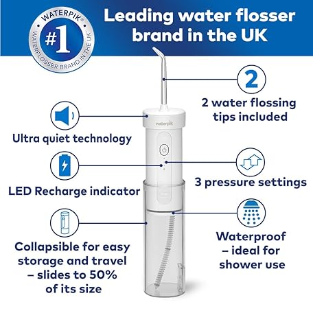 Thông tin sản phẩm Waterpik Cordless Slide Water Flosser, Electric Dental Flosser, Rechargeable Dental Plaque Removal Tool, Clean Between Teeth, Oral Irrigator, Ideal for Travel or Small Bathrooms, White, WF-16