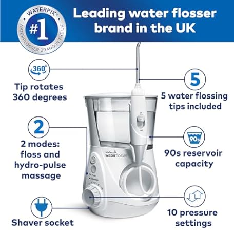 Thương hiệu Waterpik là cái tên nổi tiếng được rất nhiều khách hàng trên thế giới chọn lựa. Với kiểu dáng đẹp mắt, sang trọng, sản phẩm Waterpik Ultra Professional Water Flosser, 5 Tips, Advanced Pressure Control System, 10 Settings, Dental Plaque Removal Tool, White, WP-660UK, 2pin UK Bathroom Plug, Packaging may vary là sự lựa chọn hoàn hảo nếu bạn đang tìm mua một món cho riêng mình.