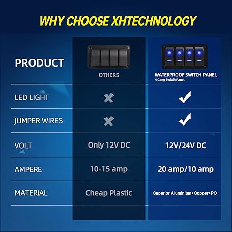 Thương hiệu xhtechnology là cái tên nổi tiếng được rất nhiều khách hàng trên thế giới chọn lựa. Với kiểu dáng đẹp mắt, sang trọng, sản phẩm Waterproof 4 Gang Aluminum Toggle Switch Panel, 12V/24V Rocker Switch Panel On-Off Car Boat Switch, Blue LED Switch Panel for Marine Boat Automotive Car RV Truck Vehicles là sự lựa chọn hoàn hảo nếu bạn đang tìm mua một món cho riêng mình.