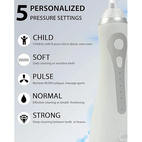 Sản phẩm Waterproof Electric Waterflosser Flossing Water Dental Flosser Teeth Pick Portable Cordless Oral Irrigator 300ML Rechargeable Travel Irrigation Cleaner IPX7 4Tips 5Modes Machine for Teeth Cleaning đang được bán với giá ưu đãi là $62.7622 tại nước Anh.