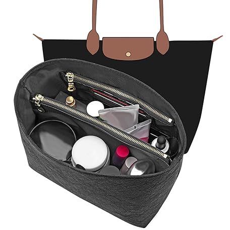 Waterproof Purse Organizer Insert for Longchamp le Pliage Large Handbags Insert DupontPaper Lightweight with YKK Zipper (Black, Large)