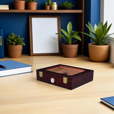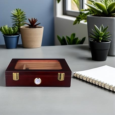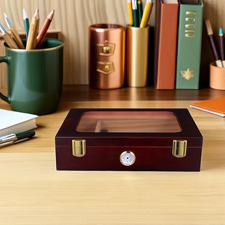WATIIFUFU Wood Cigar Humidor Box with Glass Top and Hygrometer Airtight Wooden Cigar Case for Travel and Outdoor Use Display Container
