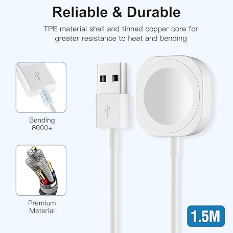Sản phẩm WC01-W Apple Watch Charger, 1.5M Fast Magnetic Charging Cable, iWatch Charger for Apple Watch Series 8 7 6 5 4 3 2 SE - White đang được bán với giá ưu đãi là $7.2703 tại nước Anh.