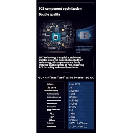 Thông tin sản phẩm WEELIAO GUNNIR Intel Arc A770 Photon 16GB OC GDDR6 2400MHz Triple Fan Black Graphics Card (256-bit, PCIe 4.0, HDMI/DisplayPort, Supports 4k)