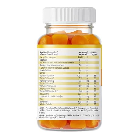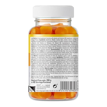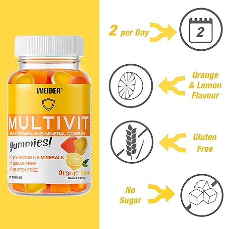 Thông tin sản phẩm Weider Multivit Gummies - 9 Vitamins and 3 Essential Minerals (zinc, Iodine, Selenium) - Low in Calories (only 13 kcal per dose) - Sugar- and Gluten-Free - 80 Gummies