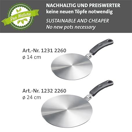 Thông tin sản phẩm Westmark Induction Adapter Plate – Adapter Plate for Induction stoves to Make Conventional Pans Suitable for Induction, Plate with Handle – Stainless Steel, Ø 24 cm