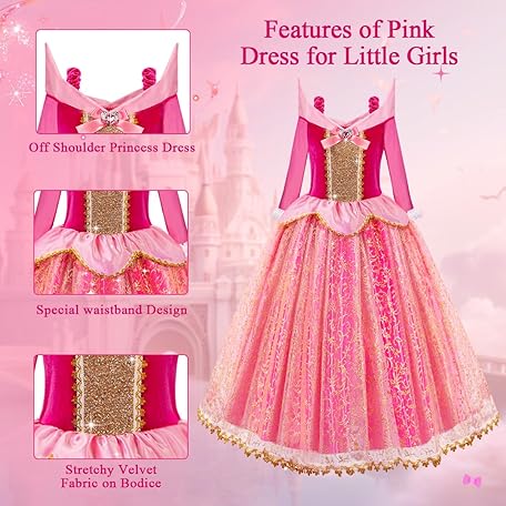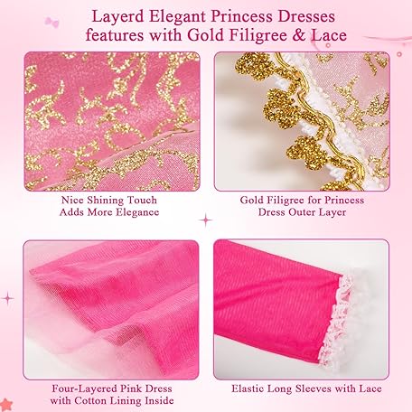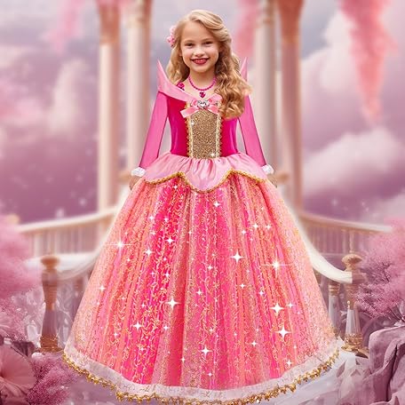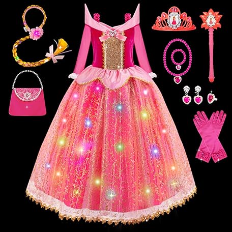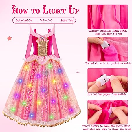 Thông tin sản phẩm WIKITOT Princess Costume for Girls, Light Up Sleeping Princess Dress Up for 3 4 5 6 7 8 9 10 Years Old Girls, World Book Day Costumes Fancy Dress for Girls