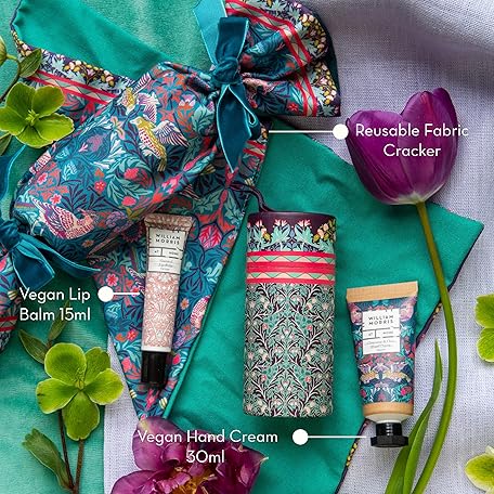 WILLIAM MORRIS AT HOME Bird and Yare, Fabric Cracker With Hand Cream 30ml and Fragrance Free Lip Balm 10ml, Travel Size and Vegan Friendly, Beauty Gift For Her, Christmas Stocking Filler