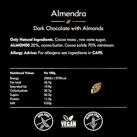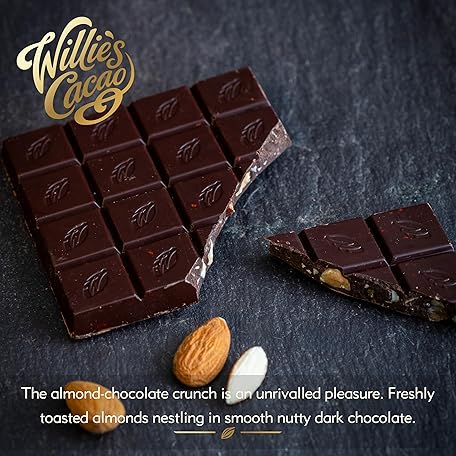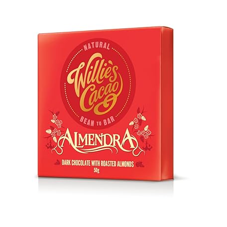 Sản phẩm Willie's Cacao Almendra, 70% Dark Chocolate bar with Roasted Almonds - 50g x 12 - Vegan - Artisan made đang được bán với giá ưu đãi là $36.8202 tại nước Anh.