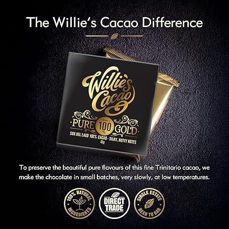 Thương hiệu Willie's Cacao là cái tên nổi tiếng được rất nhiều khách hàng trên thế giới chọn lựa. Với kiểu dáng đẹp mắt, sang trọng, sản phẩm Willie's Cacao Pure Gold, 100% Cocoa Bar - 40g x 12 - Smooth nutty notes - No added sugar - Vegan chocolate - Artisan made là sự lựa chọn hoàn hảo nếu bạn đang tìm mua một món cho riêng mình.