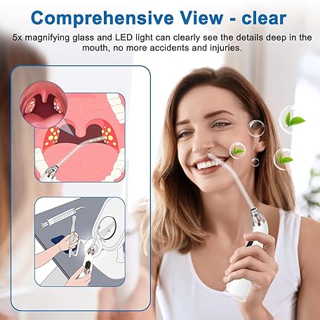 Thông tin sản phẩm WingFly Electronic Tonsil Stone Remover Vacuum, Tonsil Stone Removal Kit with 5 Suction Mode, Tonsillolith Remover Tool - Fight Bad Breath Oral Irrigator, Oral lamp, 5X Magnifying Mirror
