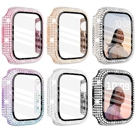 WINGLE 6-Pack Compatible with Apple Watch Case Series 8 7 Case 41mm with Screen Protector, Over 400 Bling Crystal Diamond Apple Watch Bumper Case for Apple Watch 8 7 Screen Protector 41mm iWatch