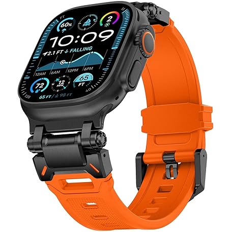 WINGLE Compatible for Apple Watch Strap 49mm 46mm 45mm 44mm 42mm(series 3), Durable Silicone Rubber Sport Straps for iWatch Ultra 3 2 1/SE 3 2 1/Series 11 10 9 8 7 6 5 4 3 2 1, Black/Orange