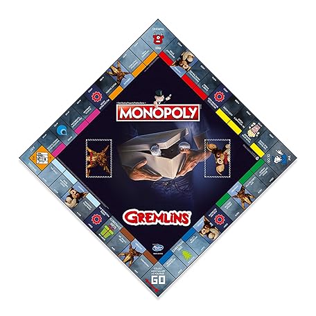 Thông tin sản phẩm Winning Moves Gremlins Monopoly Board Game, Play with Chrysalis, Gizmo, Boombox and Popcorn, Tour Kingston Falls and invest in Christmas lights and displays, 2-6 player game for ages 8 plus