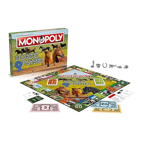 Sản phẩm Winning Moves Horses and Ponies Monopoly Board Game, Pick your bespoke equestrian token, advance to Pasa Fino, Appaloosa or Friesian, 2 plus player family game for ages 8 plus đang được bán với giá ưu đãi là $47.2842 tại nước Anh.