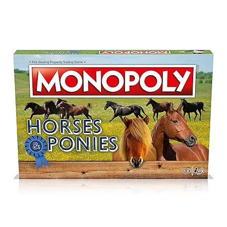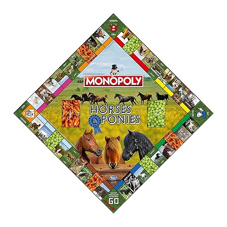 Thông tin sản phẩm Winning Moves Horses and Ponies Monopoly Board Game, Pick your bespoke equestrian token, advance to Pasa Fino, Appaloosa or Friesian, 2 plus player family game for ages 8 plus