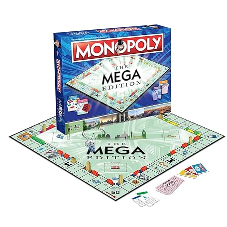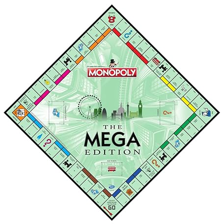 Thông tin sản phẩm Winning Moves Mega Monopoly Board Game, 12 extra spaces including Downing Street, Saville Row and Knightsbridge, Invest in Skyscrapers, for ages 8 plus