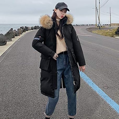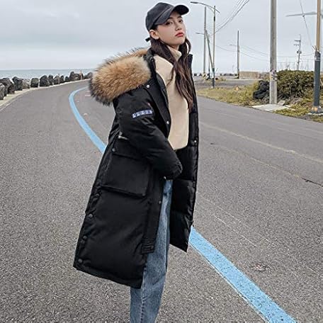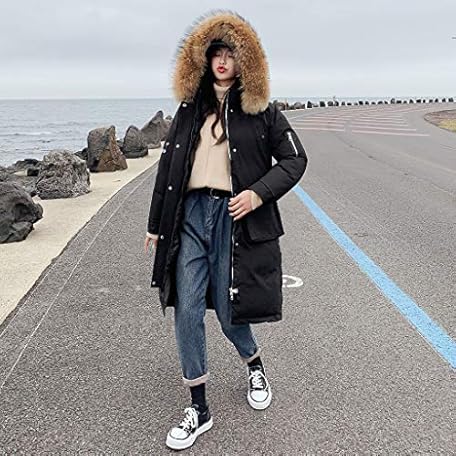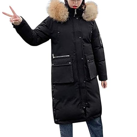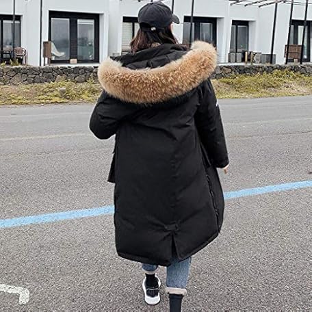 Winter Parka Women's Lined Thick Warm Down Winter Jacket with Faux Fur Hood, Kanpola Oversize Padded Jacket Loose Short Coat Trench Coat Long Buffer Jacket Outwear - Black - UK 10